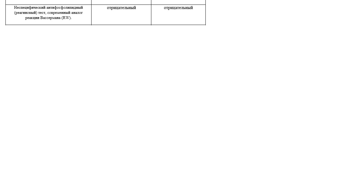 Образец анализа крови на сифилис (RW - реакция Вассермана)